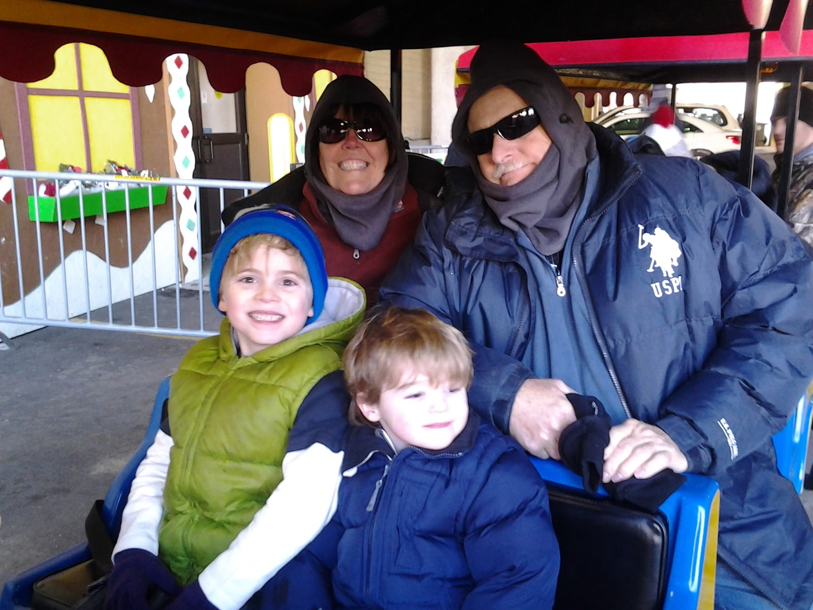 Another great tradition - and my favorite - is our annual Christmas Lights tour. Grandma & Grandpa joined us for dinner at Swenson's, a locally famous drive-in restaurant with AMAZING burgers. Once our tummies were full, we headed out to see some local light displays.