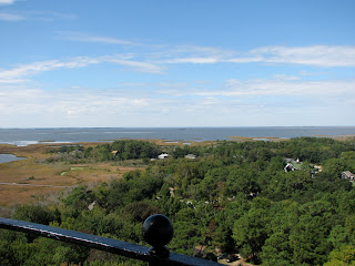 We took a few small field trips from our beach house while we were in the Outer Banks in October. One day we visited the Currituck Beach Lighthouse and the nearby Outer Banks Center for Wildlife Education. The lighthouse was very cool, and a good workout too! We climbed all 214 steps to the top... but there were a LOT of bees buzzing around up there and we chickens immediately went right back down. I did bravely pop out and quickly snap a few shots of the view before running away, though.